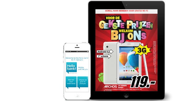 Met onze wifi-hotspot biedt u bezoekers en passanten gratis performant draadloos internet aan. In ruil bekijken de gebruikers uw boodschap. Uw boodschap kan bestaan uit informatie, aanbiedingen, kortingen, filmpjes, een virtuele tour, GPS instructies, Facebook en Twitter koppeling, enz. BlueWave geeft u bovendien inzicht in de gebruiken van uw bezoekers en passanten. Op die manier wordt BlueWave een belangrijke tool voor marktonderzoeken, populatie- en verkeersmeting, crowdcontrol, enz.